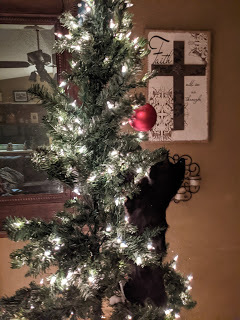 I sat on the recliner with my coffee and prayer journal, silently taking in the beautiful, peaceful sight of my sweet kitten sitting in front of the Christmas tree.