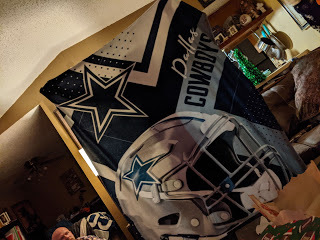 I'm thankful for the quiet morning I got to spend in prayer beside the Christmas tree, with peppermint flavored coffee in my mug, a sweet kitten sleeping beside me, my son sleeping on the couch wrapped up in his new Cowboys blanket, and a mess of wrapping paper and opened gifts all around.