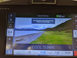 Okay, so I wish I got to do all that. Actually, I just joined the new gym that opened right around the corner, and when I press the virtual tour button, the screen takes me on famous trails all over the world. It's kinda cool.