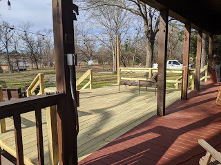 Then the boys went to Lowe's, got some materials to work on a backyard project, worked together with Mike on it for a bit, and then David and Juan headed out to go bowling with the youth from church. Mike kept working on the backyard project while I went for a nice walk in the beautiful weather and then just sat on my porch writing in my journal until dark.