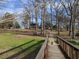 Sitting on the deck, overlooking the path down toward the boathouse.