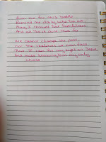 The crazy part was that I only really knew one person going, the one who owned the lakehouse. But I knew that I needed to go. I didn't know just how much I needed that time away, that time with other writers, and that time alone with God and my journal and a few poetic thoughts. Everyone else brought their laptops and typed away at whatever project they currently worked on, but I went back to the basics--a new journal and a new pen. I consider myself a poet before a writer, and poetry is a very therapeutic way for me to process my thoughts and feelings and make connections with what's going on in my life. Sad to say, it had been a very long time since I'd sat down with an open journal and just let the words pour out.