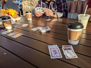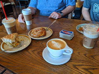 By Wednesday, we were all pretty tired from the previous day's activity, so we slept in. We got up, took care of a few errands, and spontaneously ended up at a chicken restaurant for lunch because it smelled so good when we drove by it. After that, we took our cards in to our favorite local coffee shop, got drinks and pastries, and played Phase 10 for the next two hours.
