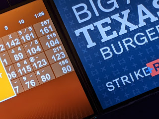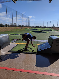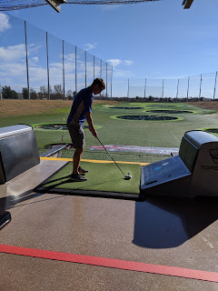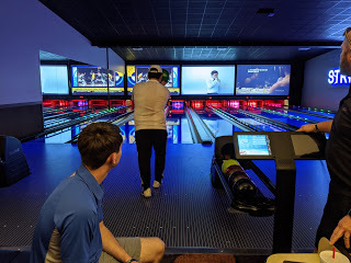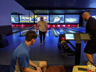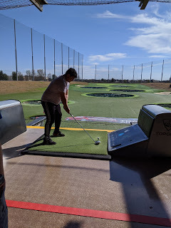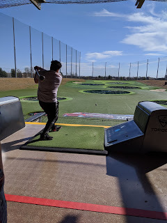 Tuesday morning, we all got up early and went to Top Golf to get the best deal. We paid for two hours at the driving range, but the ball machine kept messing up, so they moved us to another bay and gave us an extra hour for free! After that we had lunch together at Chick Fil-A, and then went bowling at Strike and Reel, a new entertainment place just built in Garland.