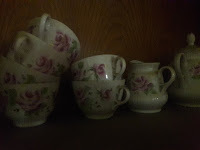 Then came David, later two indoor dogs, then Juan, then life. Those beautiful tea cups and the book displayed with them, If Teacups Could Talk, got pushed back into a corner and now have a layer of dust on top of them. I haven't gotten them out in years.