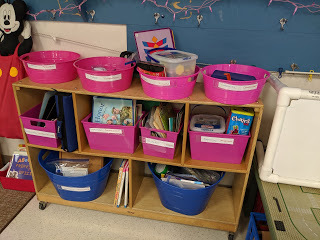 I had a really cool center system years ago to give my kids more use of all the manipulatives in the room, plus it kept kids fully engaged at all times and kept them from fighting over who got to use what manipulative. I didn't implement the system last year because I'd been out of second grade for so long, and I regretted it. So I'm super excited to use it again this year, and I'm super happy about adding more pink to my decor (all the pink tubs I found at the Dollar Tree).