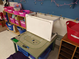 My nephew made this lego table for David when he was little with the lego roads that we had growing up. I have no place in my house for the lego table now that David's outgrown it, but I've used it in my classroom for years, and it's always one of the kids' favorite centers. This year I'm calling it the Engineering center, which actually fits well with several of our Science units.