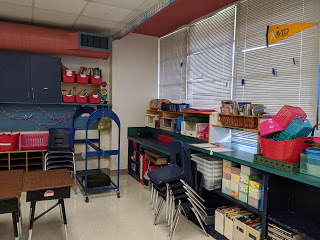The back is coming along slowly. I'm doing more community supplies this year because last year was chaos with all their little school boxes--too easy to sneak stuff from home that they shouldn't have at school, so I'm still trying to plan out how to store everything and still make the room work efficiently.