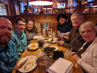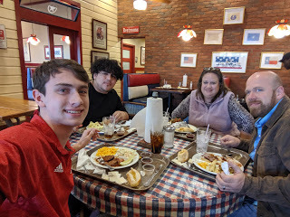 We volunteer at the food panty together whenever we're all free, and then enjoy a big dinner out together. We seized this last Wednesday evening when all church activities were cancelled for the holiday and found another favorite restaurant to eat out together. Perhaps its a few more calories and dollars than we would spend by eating at home, but we're creating memories that I wouldn't trade for anything. I'm very keenly aware that life is about to transition in big ways in just a few months, and I don't want to be left wishing that I'd embraced the time in front of me.