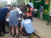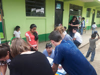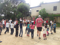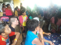 We set up a table to collect names, ages, and give out nametags. It literally took all hands on deck as we watched the line of local children continue to grow rather than shorten. Roughly 250 kids showed up on Day 1.