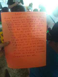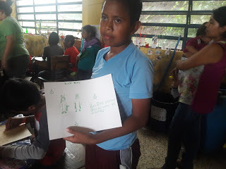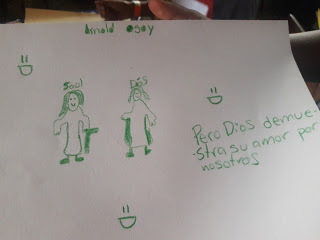 And when it seemed like all had turned to chaos and no one had even paid attention, we handed out some paper and said to draw or write something they had learned. That's when we saw the fruit of our labors--they really did get it!