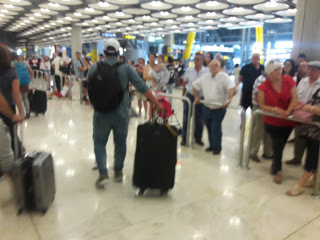 I met up with Juan as we got off the airplane, we took a picture, and at some point we got our Spain stamp on our passports. I don't remember anything else, but apparently quite a bit of time passed between the time we landed and the time we walked out to finally see Laura. I had my phone as ready as I could to capture the moment, but while dragging a suitcase with one hand and tryiing to video with the other, I only got about 8 seconds on camera, all from behind. Laura's mom stood on the other side with her camera, catching Laura take off running past the barricades as soon as she saw her brother, running straight toward him with the first of her many huge hugs. Her mom said she'd been going crazy since the moment she woke up that morning and then it only got worse after we landed as she waited for us to get our luggage and get through immigration. It was a beautiful moment. That "little girl" had been longing for her brother for years.