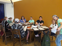 After training their leaders, then we broke up into teams back at the hotel to go over the first lesson and "plan" out a strategy for Day #1. We were told we could have 50 kids show up, or we might have 200. Only God knew.