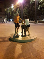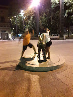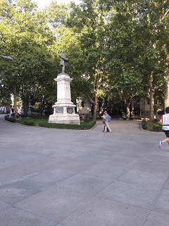 We definitely saw all that, other than all the people (because apparently everyone disappears from the city for the summer, either to the mountains or the beach, to avoid the excessive heat). We felt very pleasantly surprised, though, to find the city to feel so peaceful and tranquil. We found open plazas, parks, walkways, benches, and sitting areas everywhere. People out walking or just sitting outside together, enjoying each other's company. We didn't realize that this captured a huge part of Spain's culture, something we'd end up seeing everywhere we went.