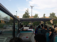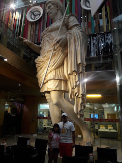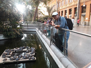 We finally made our way back to the airport/train station to catch a train to our final destination, Zaragoza, Spain. Here we are, waiting on our train. This picture spoke volumes to me. Juan David and Laura are overlooking a small pond of turtles in the middle of the train station.
