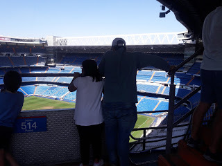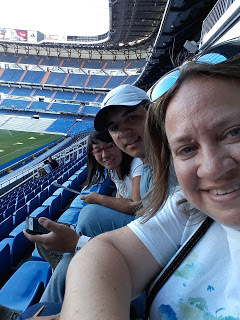 About two weeks before we left, a friend who is also an adoptive parent to Colombian children let me know about some places we could possibly visit while in Spain because she had just returned from there. She mentioned touring the Real Madrid soccer stadium, so I looked it up to see if they'd even be open on Sundays. I knew that we'd likely only be in Madrid the day we flew in. When I saw that they closed at 6:30 on Sundays, I told Juan he better tell his sister how badly he wanted to go.