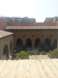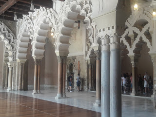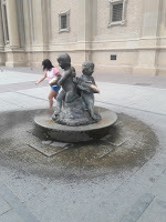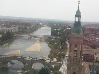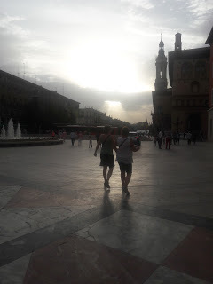 Zaragoza is beautiful. It holds so much incredible history that I couldn't even begin to absorb in my short time there. We visited huge, beautiful cathedrals, walked past the ruins of a wall built by the Romans, took pictures of an old Roman amphitheater, toured a castle first built by the Arabs while Spain was under Muslim rule for 800 years and then taken over by the Christians/Catholics, visited an amusement park, went swimming, and learned to appreciate an afternoon siesta (nap). We walked across a rock bridge built by the Romans (but obviously reconstructed since then) on a daily basis. We saw plazas full of people everywhere we went and took part in the culture of taking time to sit, grab a drink, and enjoy each other's company. We tried a lot of new foods, and I ate so many different kinds of seafood that I can't even tell you what it all was. We ate mid/late-afternoon lunches and very late night dinners. We slept in late every day and didn't go to bed until midnight or after every night.