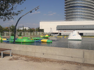 A newly developed area with very modern architecture, built in 2008, around the theme of water.