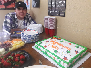 Eventually we hurried right into June, and despite all the hoops he had to jump through, Juan David walked across the stage and received his high school diploma. I'm a proud mom, and I'm anxious now about what the future holds. The following day, we cleaned house like crazy and put his pictures and his artwork up all over to celebrate him the next day. I don't know that he's ever been celebrated that way before, since we've never even celebrated his birthday without celebrating David's at the same time. Made me wonder how the whole concept made him feel.