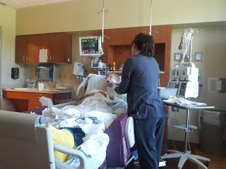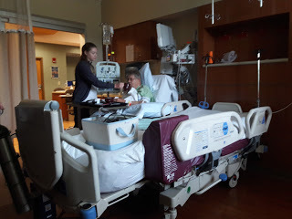 He continued to improve quickly, and he moved out of the ICU and into a regular room the next day. Due to several gaps in communication between the staff and some obvious neglect, he regressed a bit once in the regular room, but the next day they said he'd be transferring to an acute rehab facility the following day.