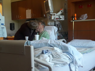 The next morning was my parents' 47th anniversary, and we were all quite nervous about what we might find when we arrived at the hospital. I can't even begin to tell you the relief we felt when we walked in to my dad and found him able to hold a conversation with us again. The swelling in his brain had gone down enough for him to regain his ability to speak and communicate, though it was obviously still a bit slurred and labored. My mom came in later with an anniversary card for him, and he was able to read it very clearly.