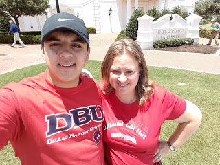 Once I got home a week ago, it took me a day or so to reorient myself after leaving my son's party so abruptly. In fact, all the party decorations were still up and everything. Once I got all that put away, I jumped in the car with both boys to take Juan to his freshman orientation and registration at DBU. Two full days of parent informational meetings while the students had activities to help them get to know the other students. He officially registered for his classes, and we officially set up an account to start paying the bill! (That's where my anxiety level about hit the roof. We've been able to see the cost come down more and more as different types of aid, grants, loans, and scholarships have come through, but there's still a gap that we're trusting God to fill.)