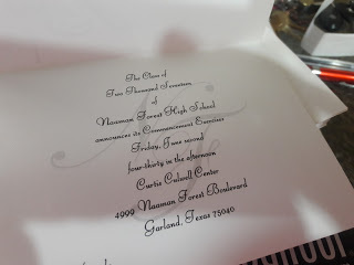 Now we look forward to things ahead. Graduation will be here before we know it. This weekend we worked on getting all the graduation announcements ready to send out next week, along with invitations to his graduation celebration here at the house. We also invited a few special people to attend the ceremony with us.