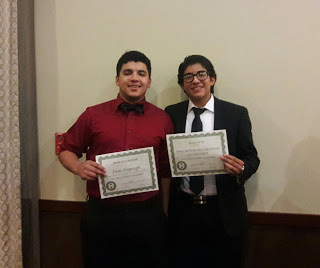 Juan received the Defensive MVP award the last two years in a row when he played for the JV team, but this year he didn't get anywhere near the playing time as a varsity player, so we didn't expect for him to go home with any specific awards. His coach surprised us, though, by calling Juan up last to give him the Coach's Award, meanwhile speaking so incredibly highly of Juan's character and dedication not only to soccer and to his team, but to his Coach. He talked about Juan's determination and hard work to chase after what he wants, stating that one day he will be "the boss". After the banquet, Juan said to him, "Maybe I'll be back at Naaman someday." His coach said he'd be more than happy to see Juan come back and take his job. :)