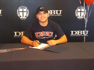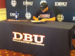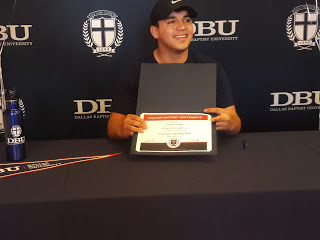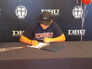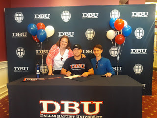 Ok, so it was already official when he registered for housing and also registered for orientation next month. But then we got an e-mail about "Signing Day", saying they'd send Juan a free t-shirt so he could wear it, take selfies, and post them on social media to tell everyone about his choice to attend DBU. They also invited us to come to a special come and go celebration on campus on May 1st where he could get professional pictures of him "signing" his commitment to attend DBU.