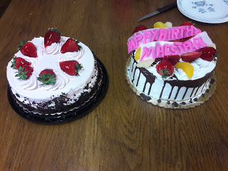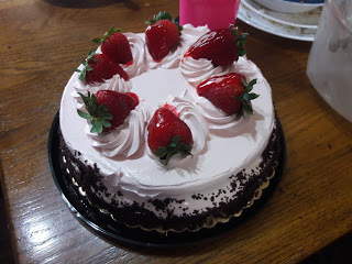 Mike wasn't too thrilled when I walked in with a cake in my hands that night because he'd already gotten me a cake with strawberries on it (in following with my strawberry tradition every year), so we indulged in both cakes after dinner. :)