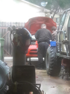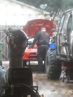 Our roles have completely reversed, and I didn't even see the beauty in it until I stopped having a pity party for myself over losing my baby. I am so thankful for the solid relationship David has with his dad and the amount of respect he has for him. As I have grown closer to Juan over the last three years, David has pulled away and grown closer to his dad, and it's a beautiful thing. Yesterday David went outside to help Mike work on Juan's car (something that Juan has absolutely no interest in or even can begin to understand--thus why he's grown closer to me and not Mike), I peeked out the door and captured this.