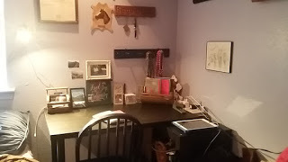 I knew in that moment that the first thing I need is a quiet, uncluttered space. My back porch is great, but not when it's 30 degrees outside. A few days later, Mike and I did some Christmas shopping and came home with the materials needed to set me up.