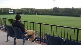 Since we arrived so early, we took our own little tour around parts of the campus, which, of course, led us to the soccer field where Juan hopes to have the opportunity to play all through college. He enjoyed sitting in the stands, imagining himself out on the field. His high school situation was pretty complicated, so we're not sure yet whether he is technically eligible to play for the school, but we hope to contact a few more people this week to get exact clarification on his elibigility.
