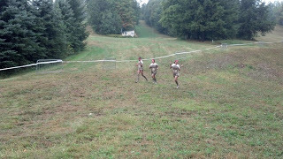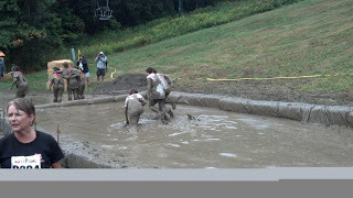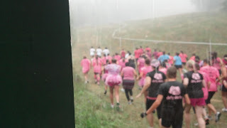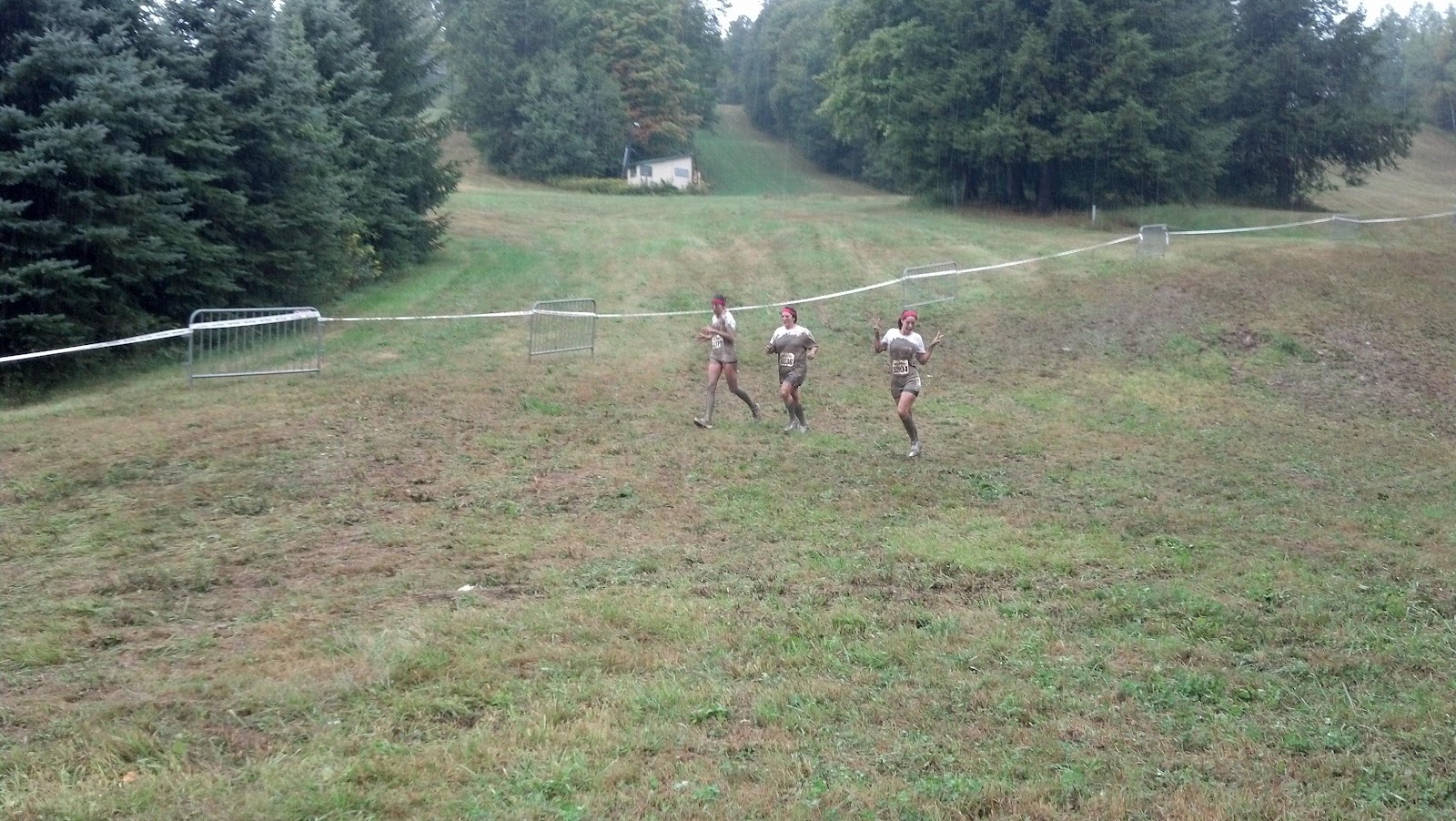 See those three white shirts in the front? That's us charging up the hill! Mind you the "hill" was a mile and a half of ski mountain. I was not impressed at this point. It's so blurry because it was also down pouring at this time. It made it muddier!