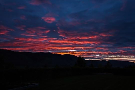 Another early morning and I’m out in the yard in my pajamas, camera in hand, trying to capture an image of the skies declaring the glory of God. This barefoot sixty-year-old woman, with sleep-tousled hair who is dodging spray from the sprinklers and lifting her Canon in praise, is having church out there. Don’t let
