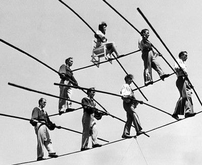 The Seven-Person Pyramid, the creation of Karl Wallenda, cost a couple of the acrobats their lives in 1962. https://www.heraldtribune.com/story/news/2012/06/10/wallendas-history-one-of-greatness-and-tragedy/29102856007/ Poetry may also try for spectacular effects, but without the inherent dangers of the highwire. Poets are more likely to risk their lives through their livers than anything else.