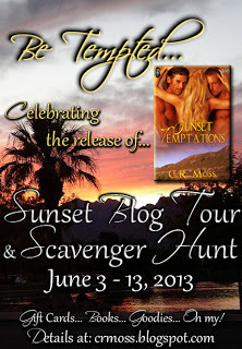 C.R. is also having a ‘Sunset Blog Tour and Scavenger Hunt’ June 3 thru 13 in celebration of the release of Sunset Temptations. For details and lists of the dates, locations and prizes of this tour and hunt, visit: http://crmoss.blogspot.com/p/blog-page_26.html