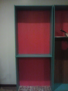 So yes, I still have to put the actual shelves back up, but doesn't this just look pretty? There are three of these tall bad boys just waiting for some love. I have three white smaller bookcase that will remain white, just to give the color explosion a break :). I even spray painted my dry erase board (you can totally see who's coming up in the guest blog post line-up):