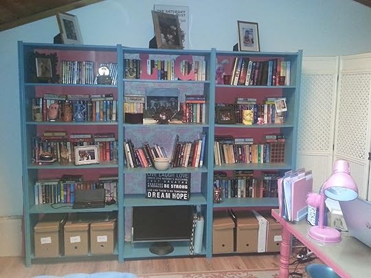 I just recently completed decorating and organizing my home office. After months of procrastination and laziness I finally got around to painting my last shelf and tacking on the last bit of trim. My office is now my favorite room in the house.