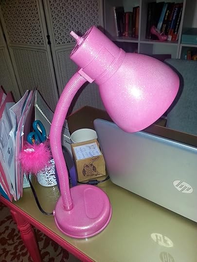 Other Stuff: HomeGoods, Overstock.com, World Market, Life. Other things in my office have been gathered through out the years. My dry erase board has been around for a while, I just spray painted it to match the rest of the room. My desk lamp has been around since lord knows when and also got a healthy dose of pink paint and gold glitter. The ottoman is a World Market find, the rug an Overstock.com indulgence and my chair, lantern and foot stool are all HomeGoods finds. And the microscope behind my desk is a reminder of my days working in a science lab.