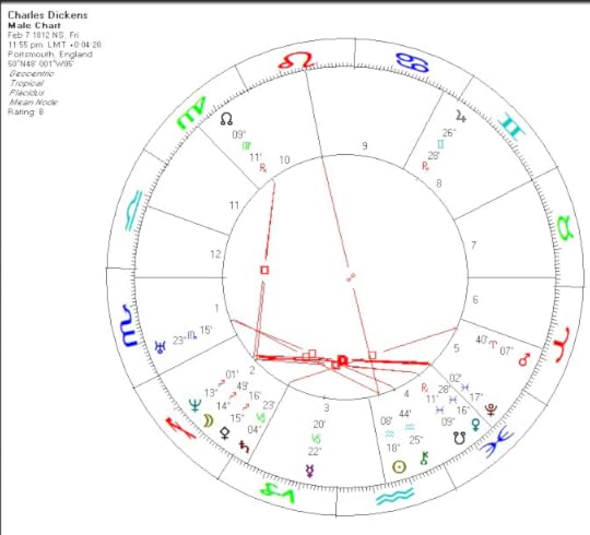 Much more analysis could be done on his chart. Interesting to note the strong square to the nodal axis with Neptune indicating the need to release limiting beliefs, religious views, or philosophies. While Dickens was considered Christian, he seemed to despise organized religion. This is certainly an area for more exploration.