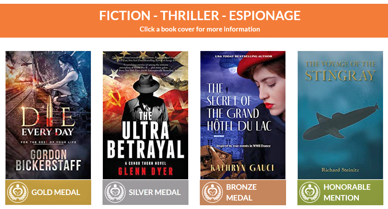 Die Every Day has taken the Gold Medal in the 2021 Readers' Favorite Book awards in the Fiction Thriller Espionage Category