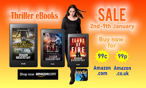 The Belgravia Sanction, Die Every Day, Tears of Fire are reduced to 99p (UK) 99c (USA).