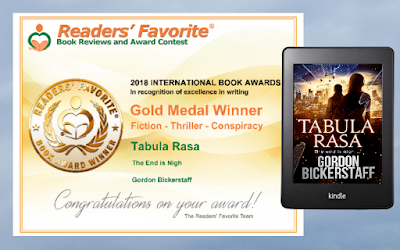 Announced on the 1st September 2018 by Readers' Favorites Tabula Rasa took the GOLD medal in the Fiction-Thriller-Conspiracy category