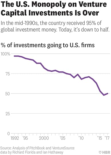 The second shift is the accelerating Globalization of venture deals. For decades, the United States held a near monopoly on venture capital, where as late as the mid-1990s, the U.S. captured more than 95% of all venture capital investments globally.