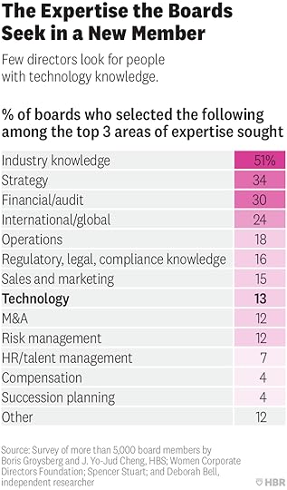 In light of boards’ lackluster performance on innovation, are they proactively taking steps to address their weaknesses? Recruiting directors with technological expertise is one avenue through which boards can boost their innovative capabilities. When we asked directors which three areas of expertise they prioritized when filling their most recent open board seat, just 13% highlighted tech expertise. Instead, boards typically looked for expertise in their firms’ industry (51%), strategy (34%), and financials (30%).