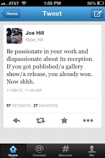 Was just surfing Twitter as I do most days after completing my word count and saw something Joe Hill tweeted about the reception of his work or anyone's work for that matter-