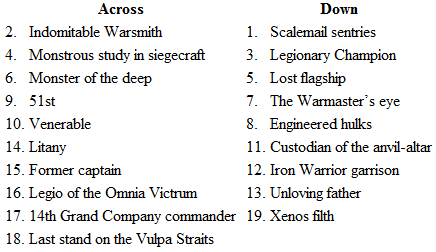 Earlier in the month we played some games on the blog and they were well received. I decided to take another shot. Something a little more difficult this time: a puzzle relating to my Horus Heresy short story The Iron Within. The Iron Warriors are masters of siege warfare and fortification. Check out the Iron Warriors construction below. See if you can use the clues to fill in the blanks.