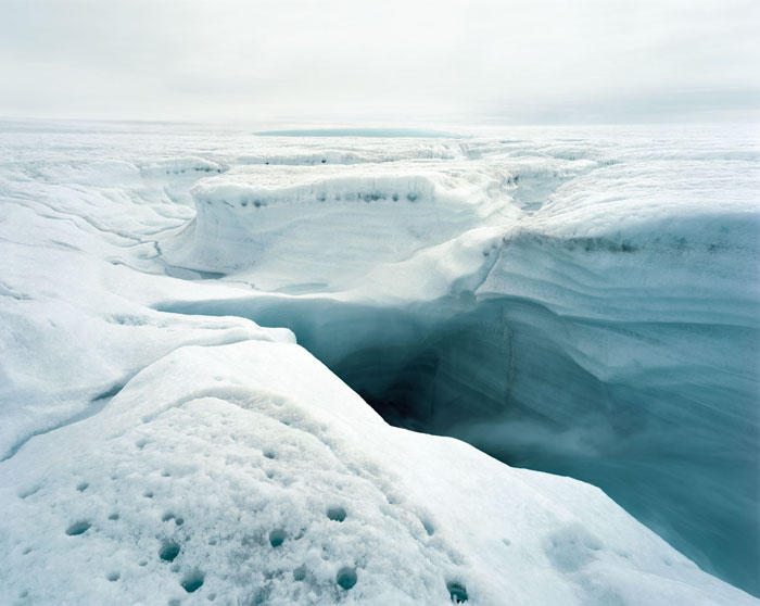 Παρατήρησε τη διαφορά στο χρώμα του πάγου που καλύπτει τη Γροιλανδία, τη βόρεια Ρωσία και το Βόρειο Καναδά, με το χρώμα του πάγου στο Βόρειο Πόλο, που έχει αποκάτω μόνο θάλασσα.