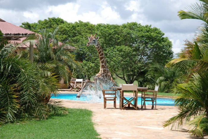 Και Τώρα, Μια Καμηλοπάρδαλη Στην Πισίνα